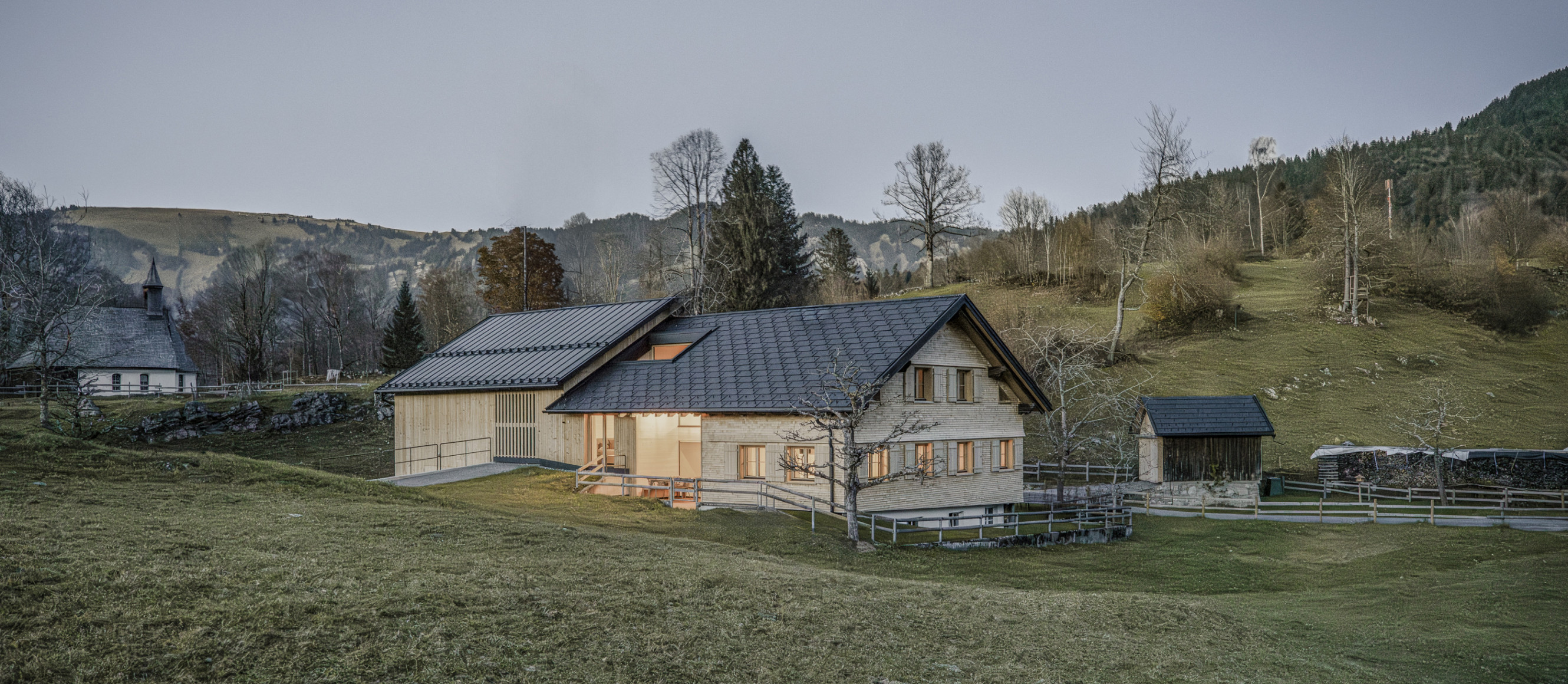 Auf der Schnepfegg oberhalb von Schnepfau liegt ein Vorsäß mit Geschichte: einst Gasthaus, seit 1954 Hütte. Daneben befindet sich die denkmalgeschützte Wendelinskapelle aus dem Jahr 1636. Heute ist das Ensemble wieder ganzjährig nutzbar – für Arbeit, Familie und Landschaft.