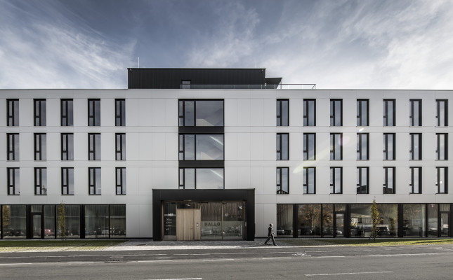 Wo früher ein Einfamilienhaus stand, wurde durch Arrondierung Platz für einen viergeschossigen Bürobau in Passivhausqualität geschaffen. Dieser grenzt sowohl an das Dornbirner Ried als auch an das Messegelände. Mieter können dadurch die ansprechende Landschaft genießen und zugleich die gut ausgebaute Infrastruktur nützen. Das Gebäude bietet Büro- und Dienstleistungsflächen von 200 bis 850 m².