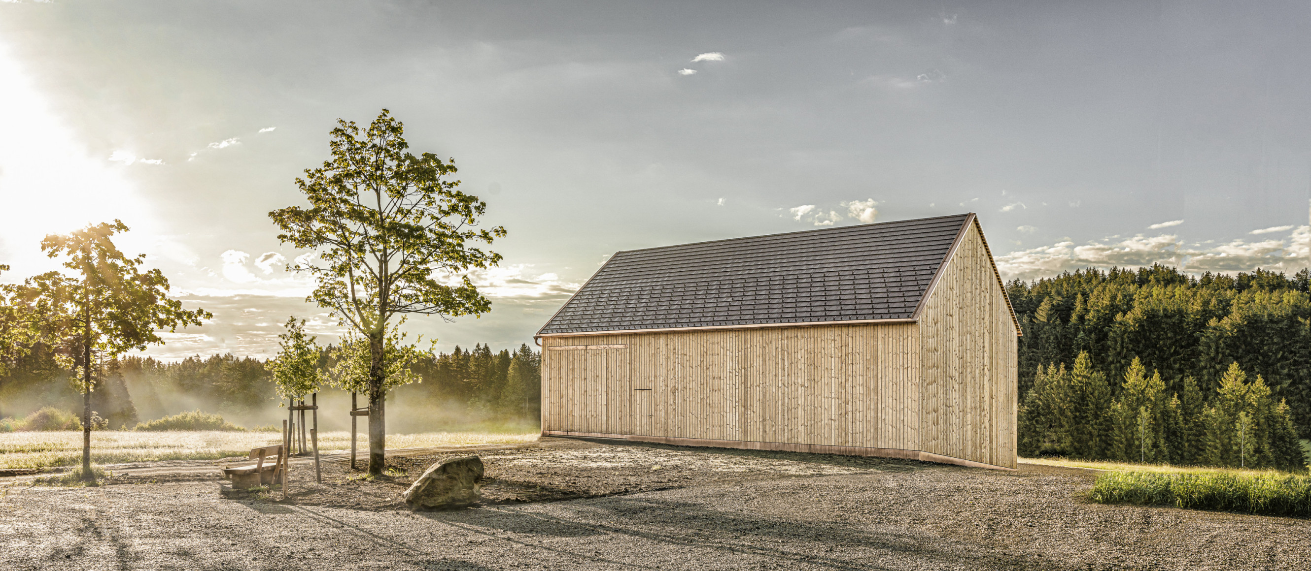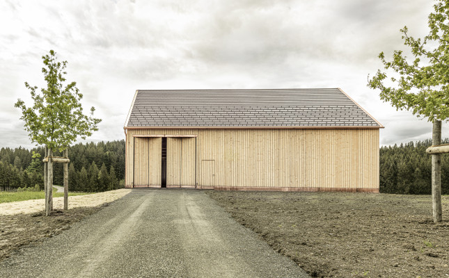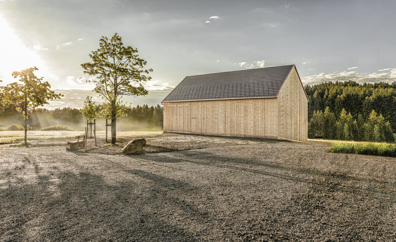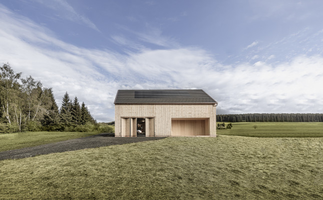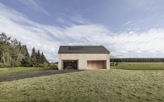 Der entworfene Längsbaukörper mit Satteldach orientiert sich an der traditionellen Architektur der Region und fügt sich sensibel in die Landschaft ein. Verkleidet mit naturbelassenen Materialien, beherbergt das Gebäude geschickt integrierte Funktionen wie Garagen, Lagerflächen, eine Tankanlage sowie ein öffentliches WC. Die klare Strukturierung und die durchdachte Raumaufteilung gewährleisten eine effiziente Nutzung des Gebäudes, ohne die äußere Erscheinung zu beeinträchtigen.