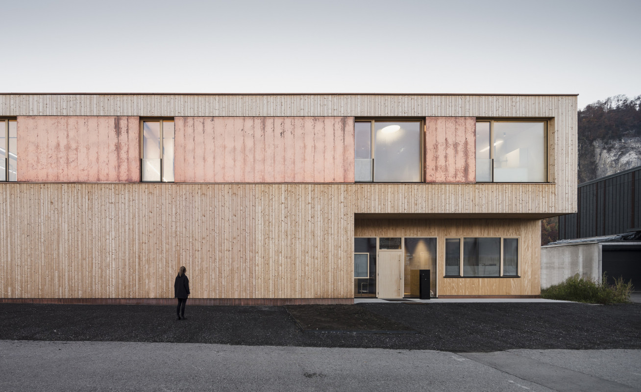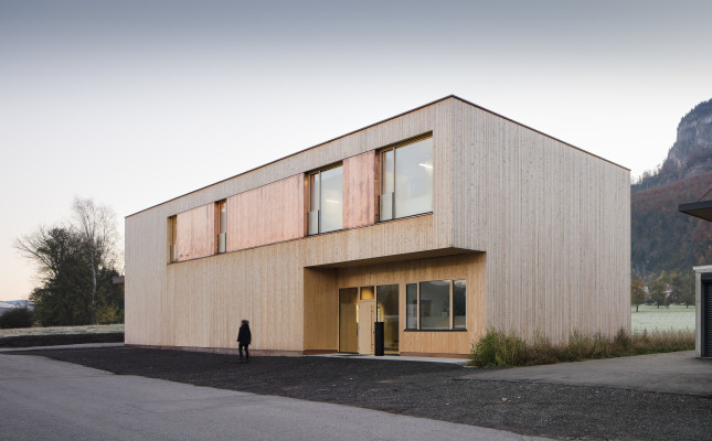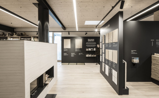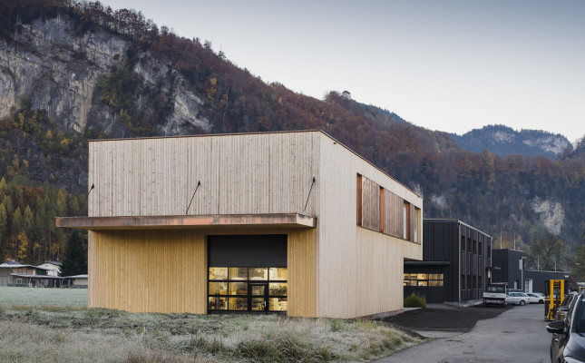 Der kompakte zweigeschossige Flachdachbau befindet sich in Hohenems im Gewerbegebiet. Selbstsicher und stark setzt er sich den großen Lagerhallen die ihn umgeben entgegen. Der Bau gliedert sich in die Bereiche Lager- und Ausstellungsbereich, welche sich im nördlichen Gebäudeteil befinden und der Verwaltungseinheit im südlichen Teil. Erschlossen wird das Gebäude im Westen über die Ermenstraße. Über den großzügigen Eingangsbereich gelangt man in die große Lagerhalle, die Büro- und Mitarbeiterbereiche im Erdgeschoss und über den Erschließungskern nach oben zum Empfangsbereich. Von dort erreicht man die großzügige und offen gestaltete Verkaufs- und Ausstellungsfläche, die sich über der Lagerhalle befindet, sowie weitere Verwaltungsräume des Unternehmens.