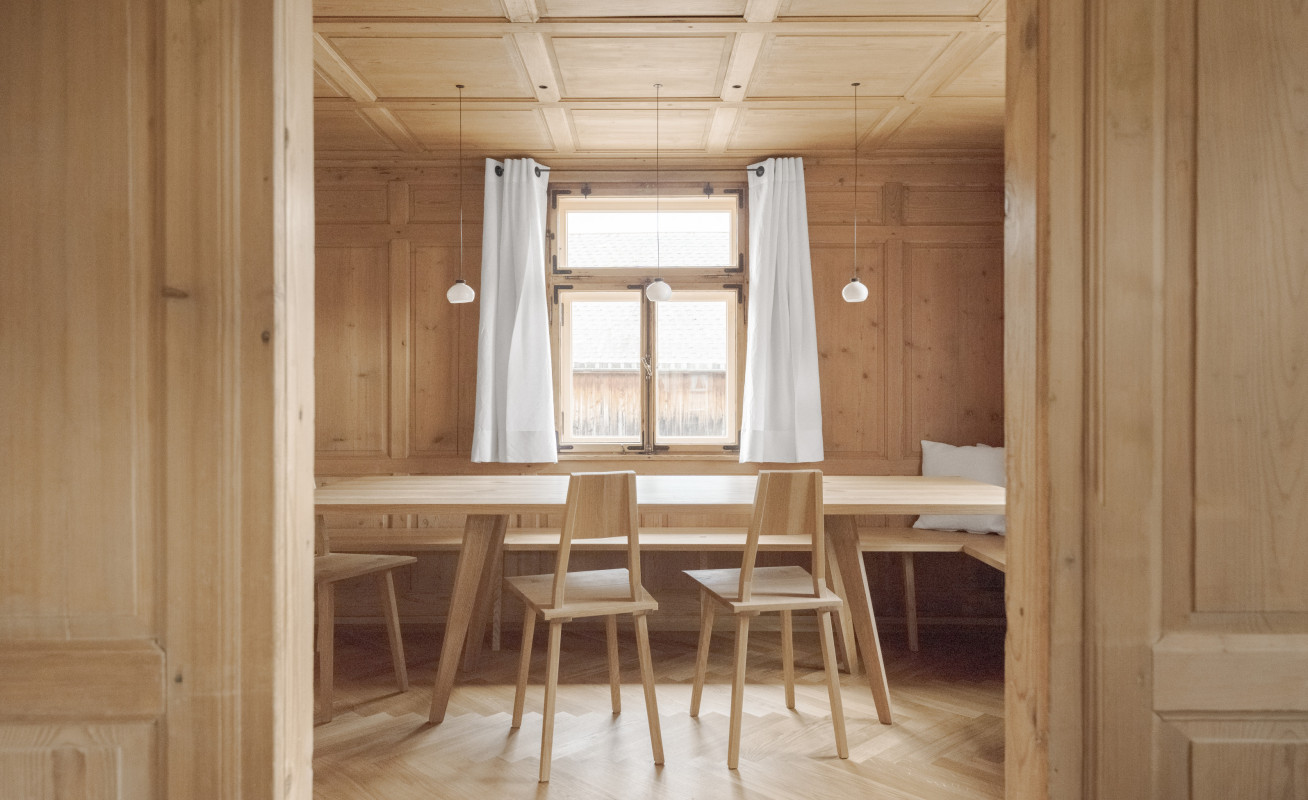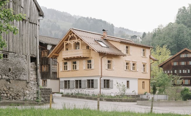 Das Gebäude befindet sich im denkmalgeschützten Ortskern von Schwarzenberg, einer Gemeinde, die für ihre harmonische und geschlossene historische Bebauung bekannt ist. Das Haus fügt sich in diese Umgebung auf einzigartige Weise ein und überzeugt durch seine handwerkliche Exzellenz und die hohe gestalterische Qualität, die sowohl in der äußeren Erscheinung als auch in der Innenarchitektur zum Ausdruck kommt.