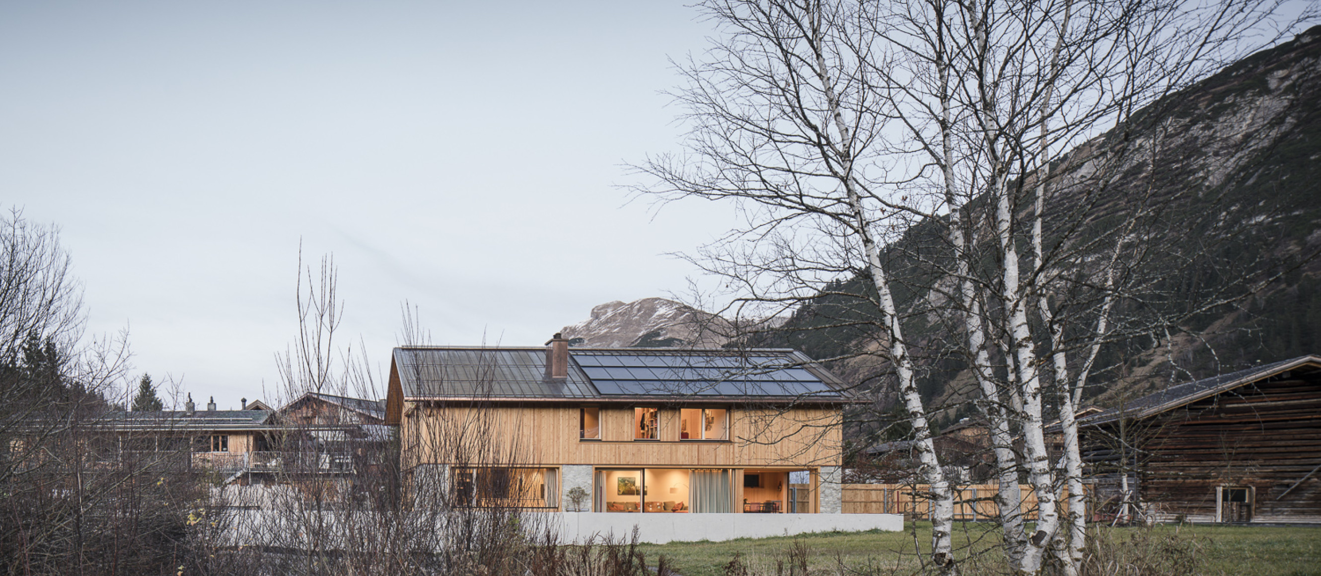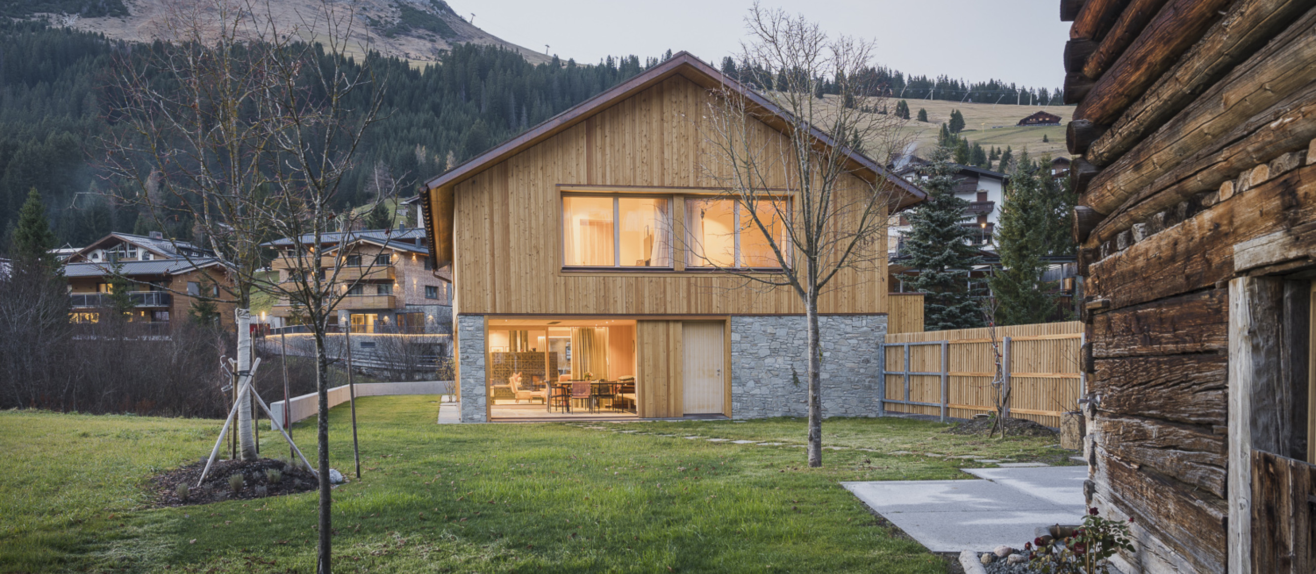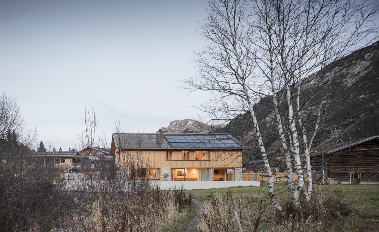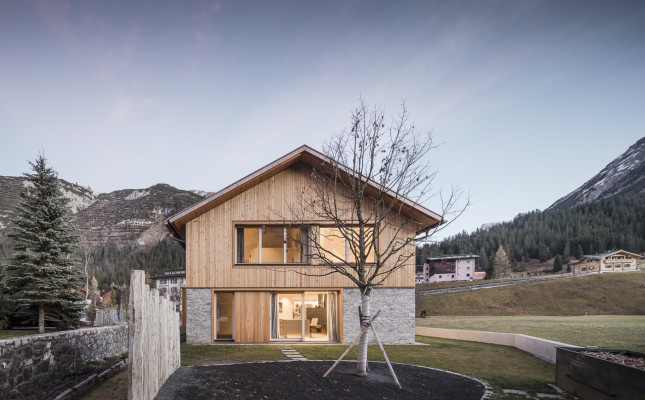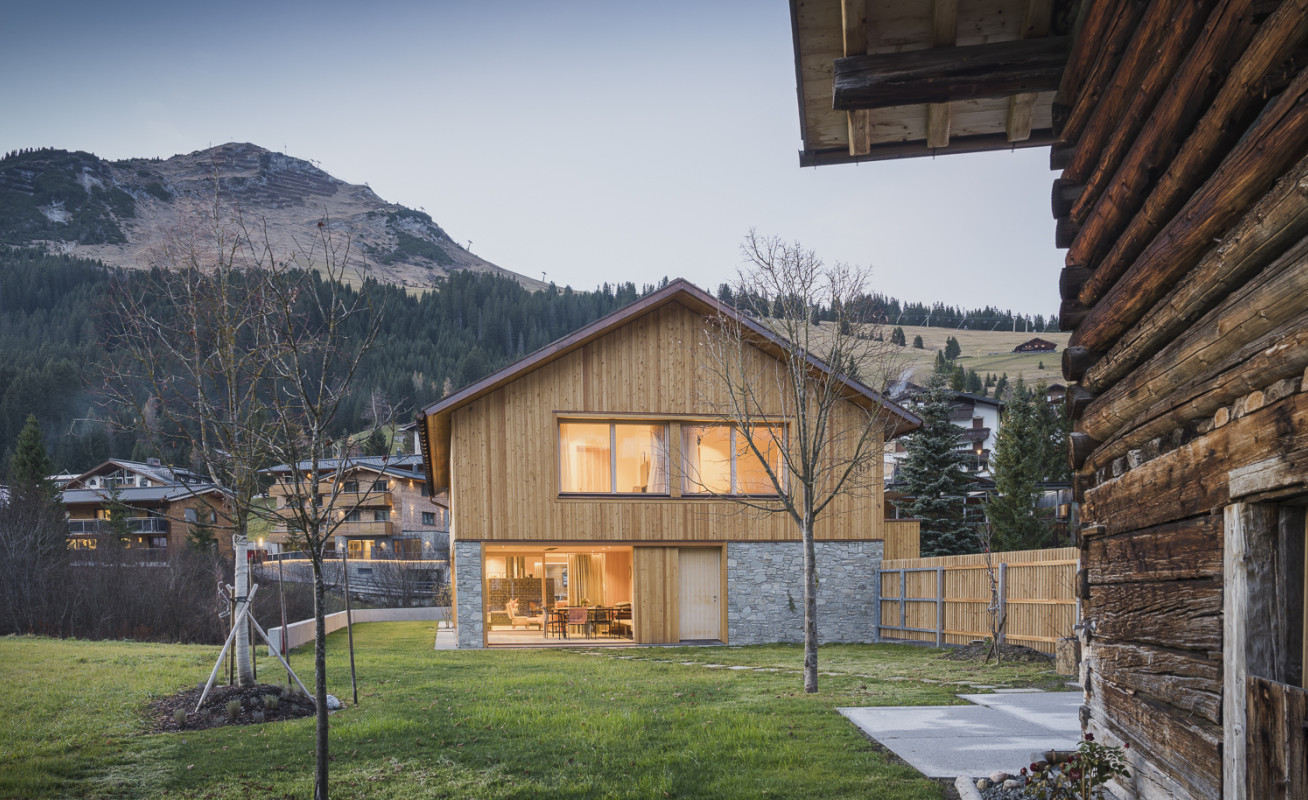 Inmitten der alpinen Kulturlandschaft von Lech, haben wir ein Konzept realisiert, welches in einem starken Dialog zur Landschaft tritt. Der Baukörper orientiert sich in seinem Erscheinungsbild einerseits an der traditionellen Bautypologie – andererseits entspricht der Längsbaukörper mit Satteldach aber dem Stil von Heute.