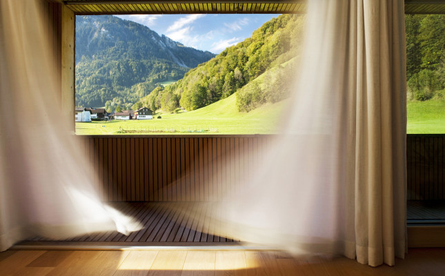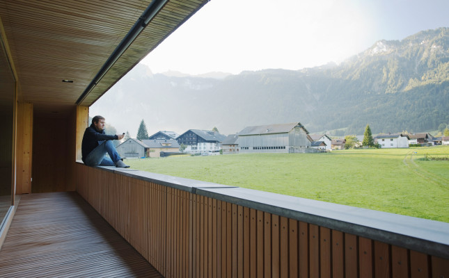 Ungemähte Wiesen mit bunten Alpenblumen, blühende Obstbäume und Ausblicke in die fantastische Bergwelt: Dies waren die Gegebenheiten, die der Bauherr in seinem Eigenheim spüren und erleben wollte. So entstand ein zweigeschossiges Gebäude am Ortsrand von Mellau, sanft in die Natur eingebettet.