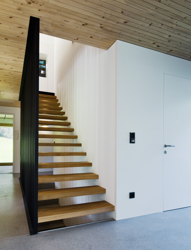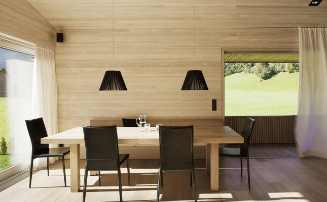 » Ein naturverbundener Bauherr ließ sich im Bregenzerwald ein modernes, zeitgemäßes Holzhaus bauen, das sich der traditionellen Kulturlandschaft der Gegend anpasst und doch auch eigenwilligen Ansprüchen gerecht wird. «