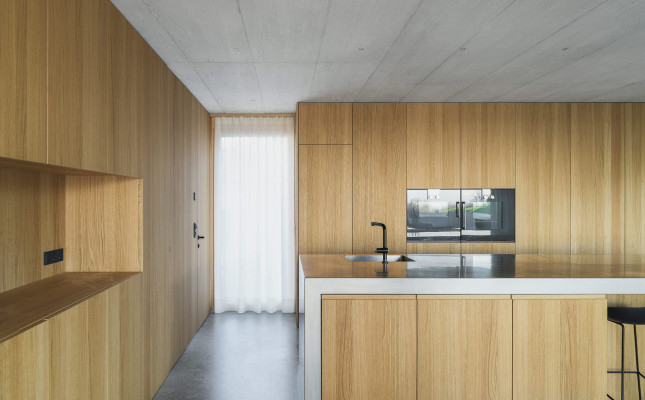 Der Zugang erfolgt über einen Eingangsbereich im Untergeschoss, der nach Westen ausgerichtet ist. Die Familie bewohnt und lebt auf der zweiten Ebene, während sich die Gemeinschaftsräume im dritten Stock befinden.