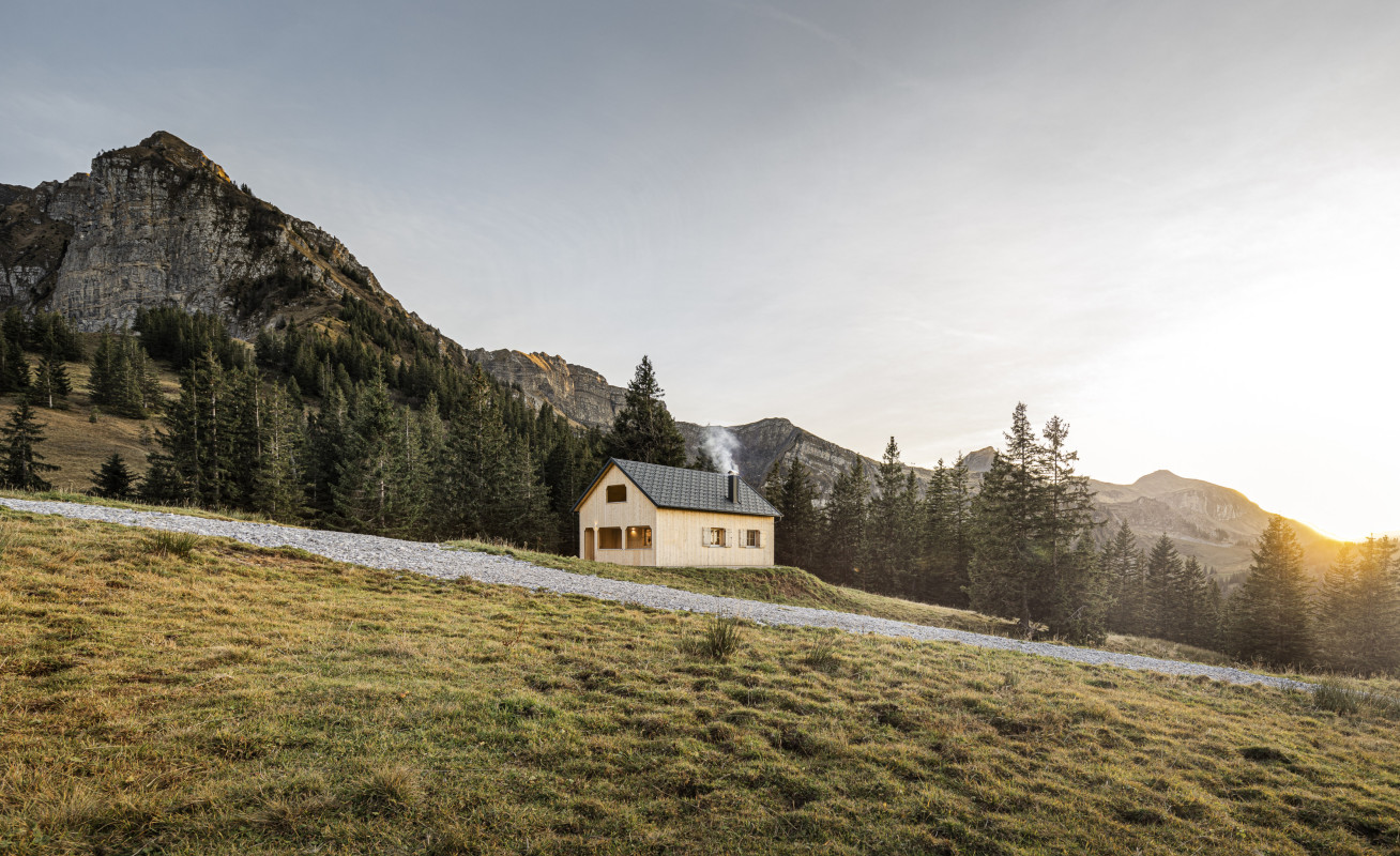 Die Jagdhütte Wurzach liegt oberhalb von Mellau im Bregenzerwald und wurde als zeitgemäßer Holzbau anstelle eines abgetragenen Bestandsgebäudes errichtet. Sie dient als Aufenthaltsort für Jäger – eingebettet in eine charaktervolle Berglandschaft, mit direktem Bezug zur Umgebung und deren jahreszeitlicher Veränderung.
