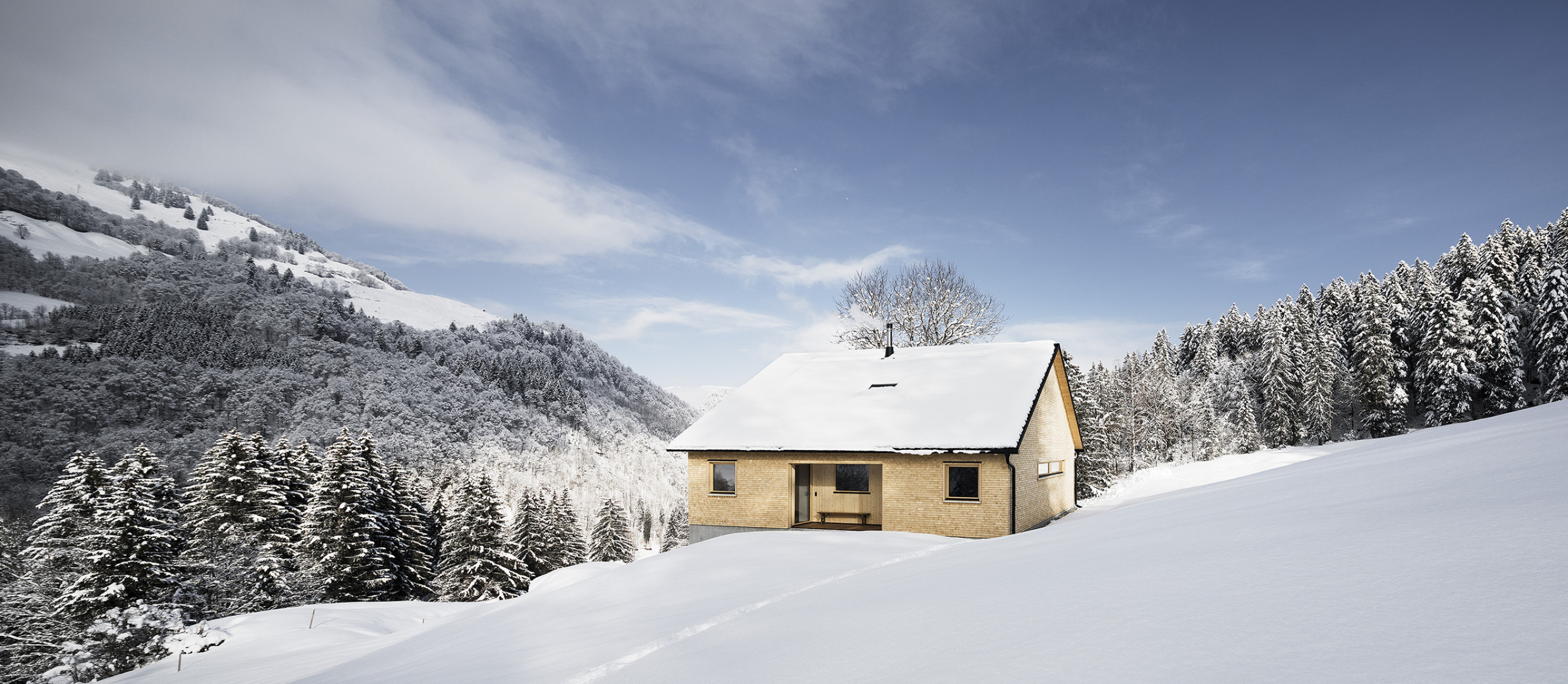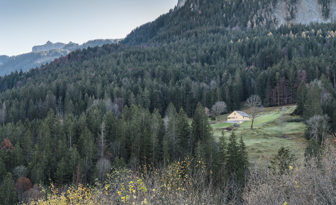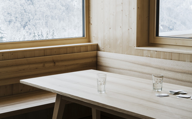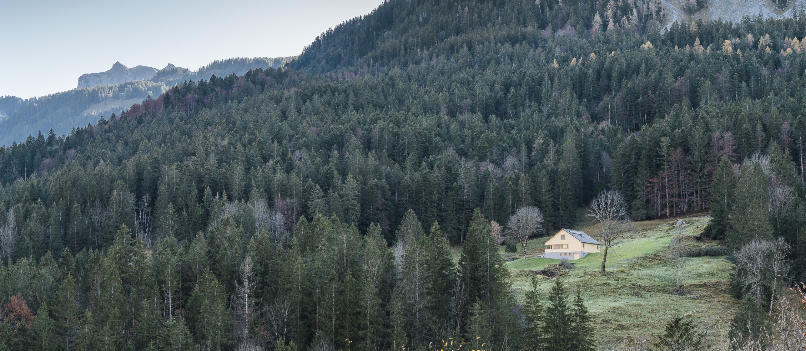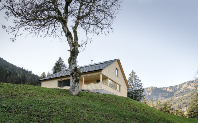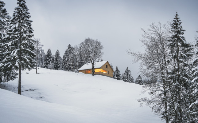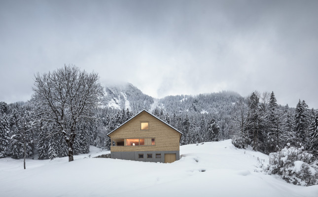 Neuerfindung eines jahrhundertelang durch die Dreistufenlandwirtschaft geprägten Ortes im hinteren Bregenzerwald. Der sehr desolate Zustand des Bestandsgebäudes zwang die Besitzer zu einem Neubau der Hütte. Aus Respekt gegenüber den Vorfahren wurden die Eigenheiten und Funktionen des sehr einfachen Ursprungsbaus übernommen und neu interpretiert.
